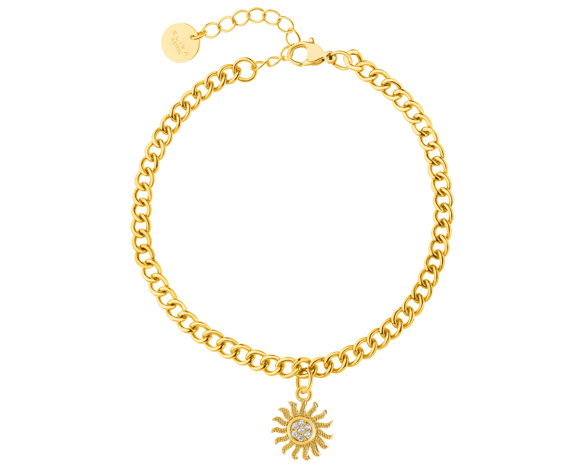 BRANSOLETKA Z MOSIĄDZU POZŁACANA Z CYRKONIAMI - SŁOŃCE